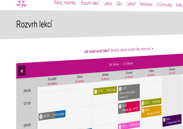 • rezervace lekcí
