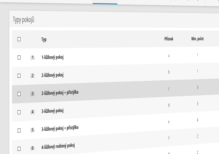• přehled, popis a fotogalerie ubytovacích prostorů (pokojů)